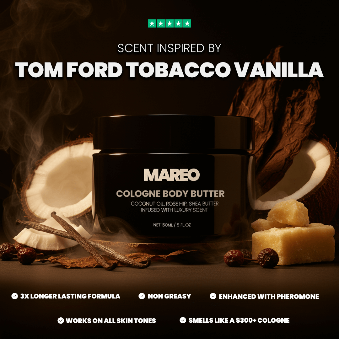 Every ingredient in Mareo Cologne Body Butter has a purpose: to hydrate, protect, and keep that luxury scent locked in all day. No fillers. No harsh chemicals. Just results.